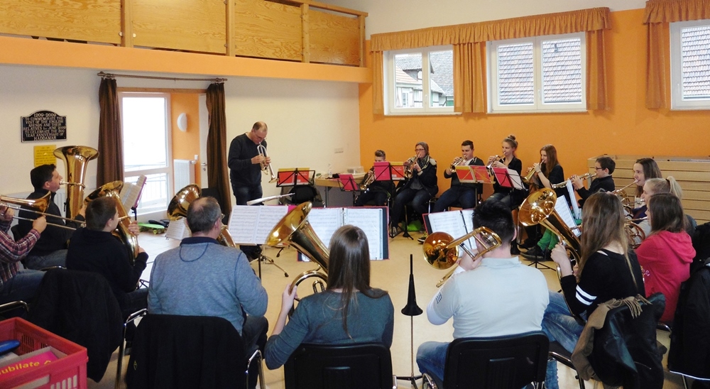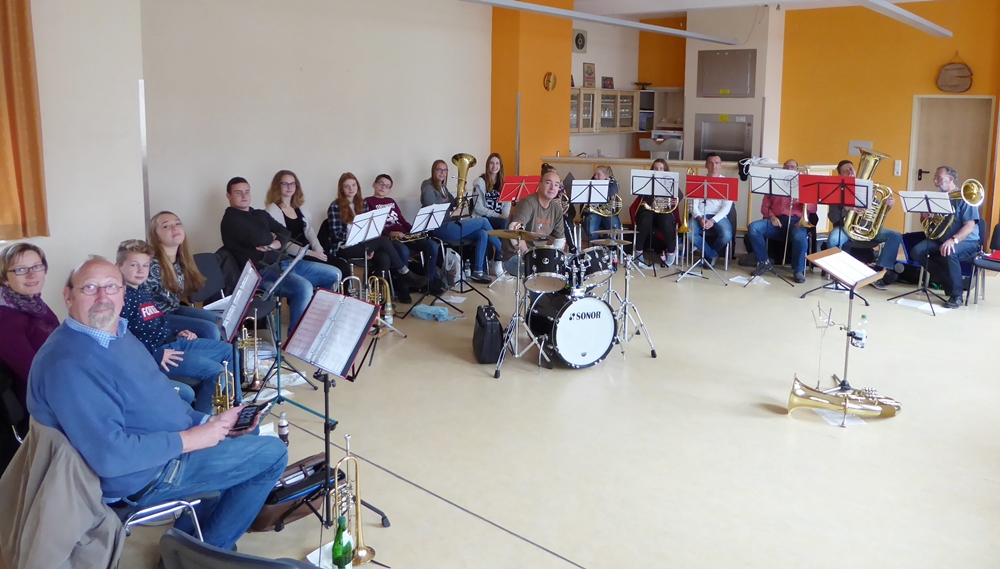 (Bläserbrunch). Hier wurden die Stücke für das Konzert eingeübt oder