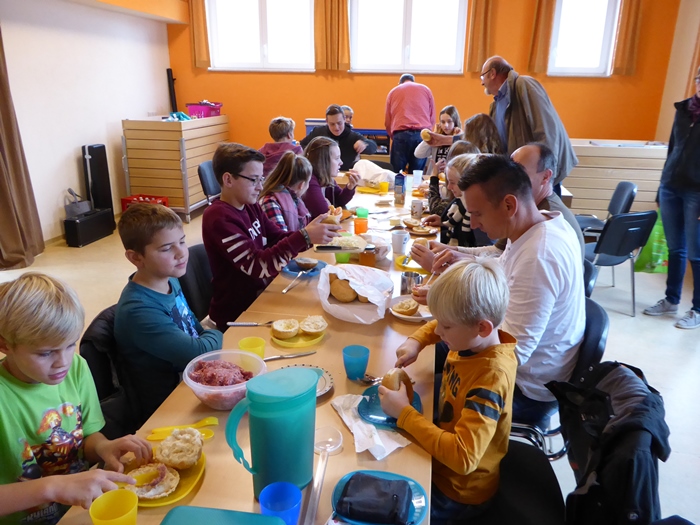 dabei und langte beim Frühstück kräftig zu |